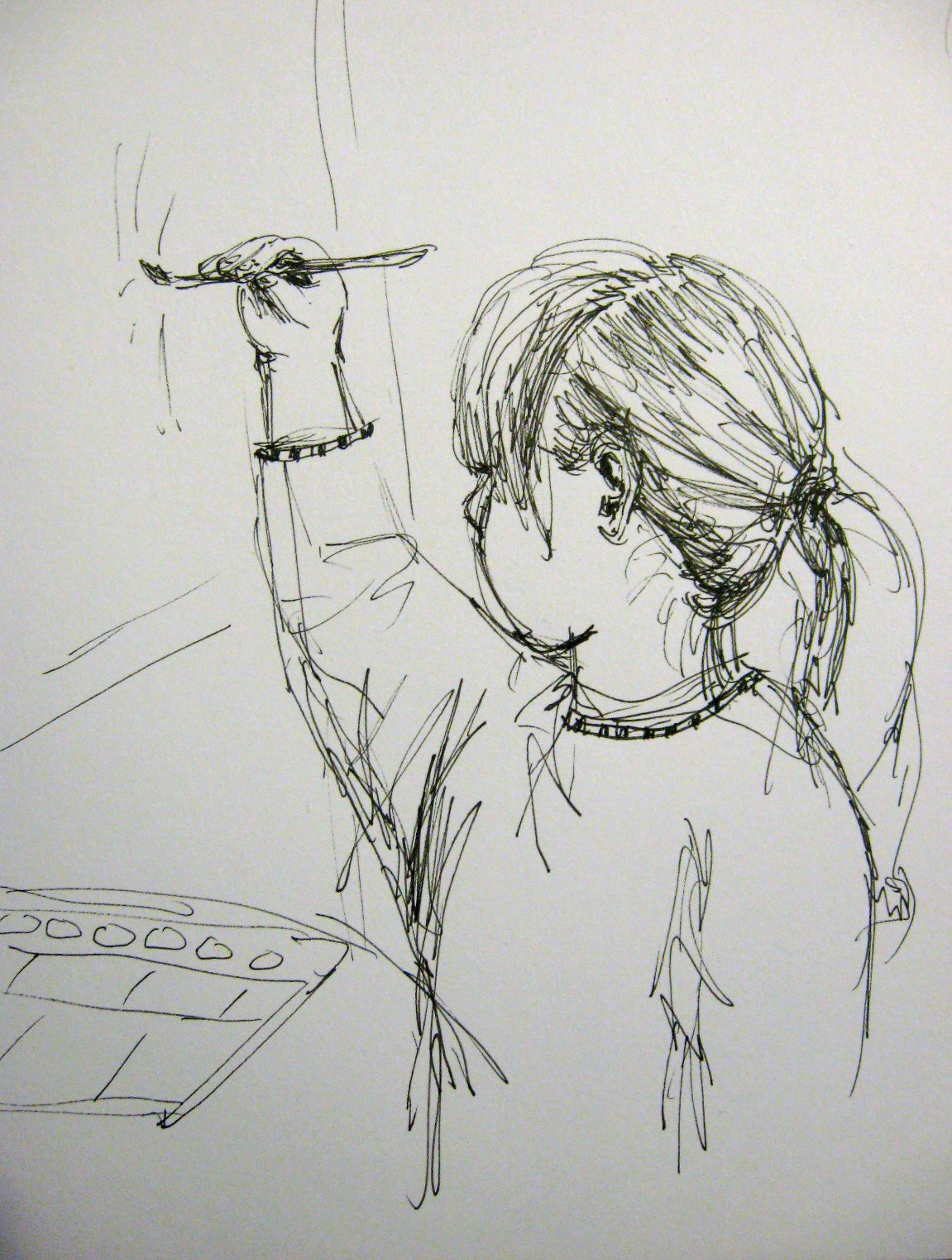 I had written off doing a post this week after hosting a Christmas party and then coming down with a terrible, terrible flu, but it turns out that my daughter was inspired to do some painting today. So while she took over my studio I sat and sketched her; a perfect winter day.