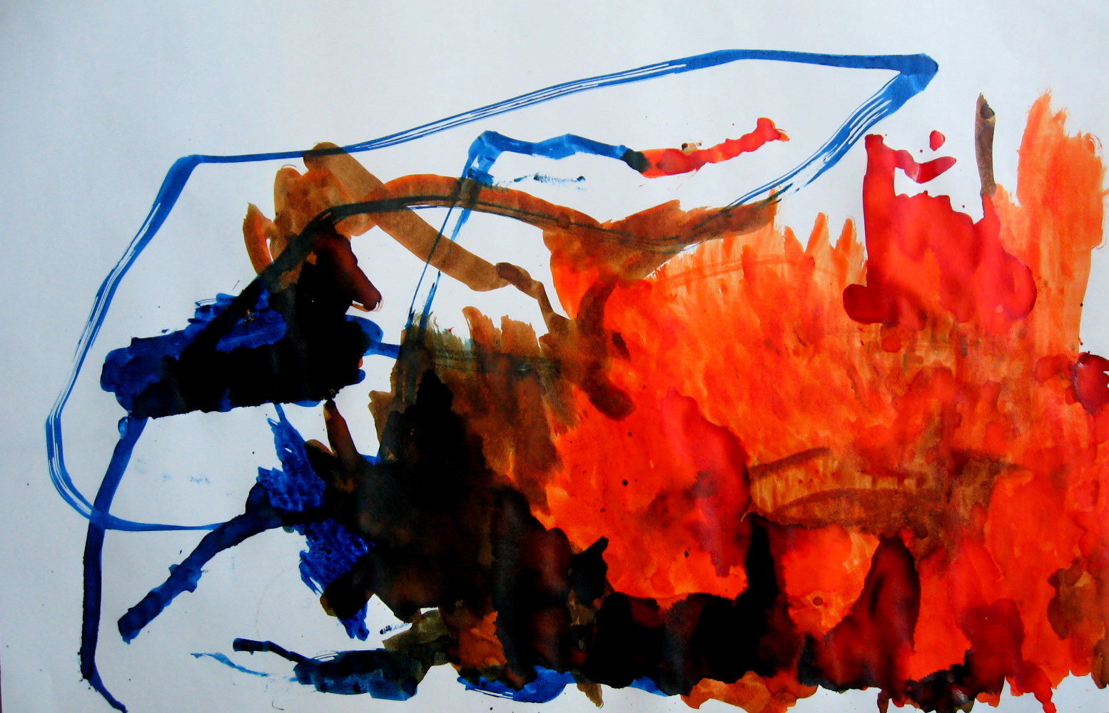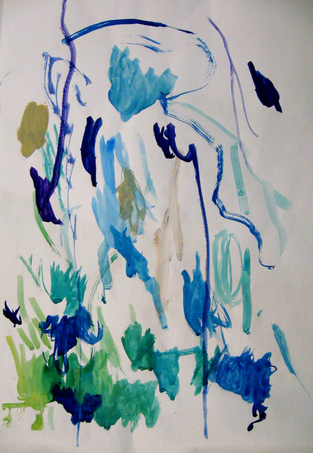 Here is her first painting which she took about a half an hour to do. I find watching her paint fascinating. She spends a lot of time on her paintings and is very particular about colour choices and mark placement (she also does not like me speaking when she’s working). This one was done with her Crayola kid’s paint.