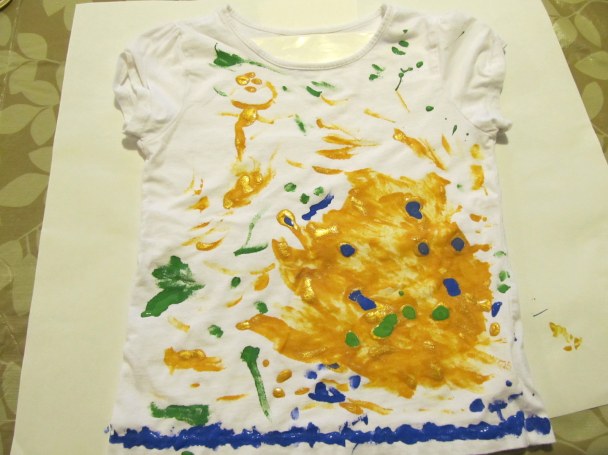 The next day she asked to paint another school bag, so I thought hey, why not one of those plain white shirts she has!