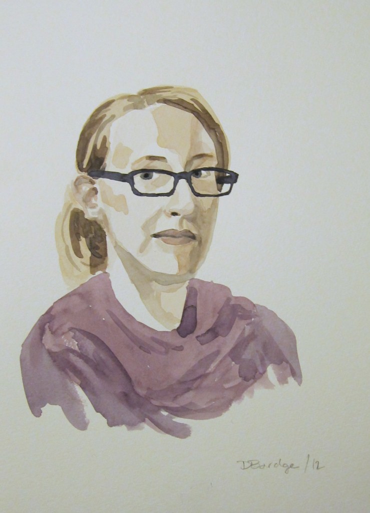 First post of 2012! I thought I was going to miss today, which would not be such a great way to start the year, but last night in the wee hours I finally made myself sit and paint. My husband pointed out that the style of this one looks a lot like comic book illustrations. I guess it’s hard not to make a watercolour portrait life-study look comic-bookish. That is, if you want to keep the graphic quality of the paint pooling which seems to be much of the point to watercolour. For me anyway.