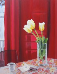 This is part of celebrating the Calgary Public Library’s 100th birthday this year. The painting I have in that show is “The First Tulips” (shown at right).