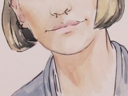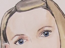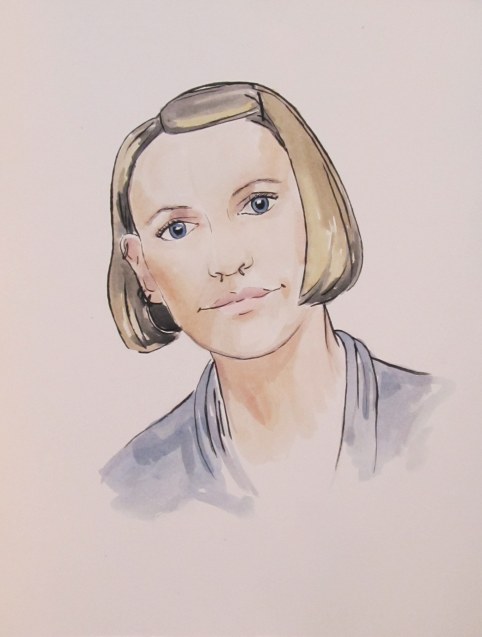 I’m reading a lot of comics lately. Decided to try something comic-bookish with my watercolour this week. It seems like a natural progression. For this I first did a sketch of myself in the mirror and outlined it with a sharpie. Then because it was on such thick sketchbook paper I decided to scan it and do a printout of it so I could trace it lightly onto watercolour paper. Then I did the watercolour of myself, in the mirror again, and lastly I outlined it with black watercolour paint and a very fine brush. It was fun. The eyes aren’t quite right–to look like me that is, they do look very comic bookish. And for some reason I always get the bottom half of my face right but not the top, so there the bottom half is me, the top half not so much. But all together it’s a nice comic book style Dayna :)