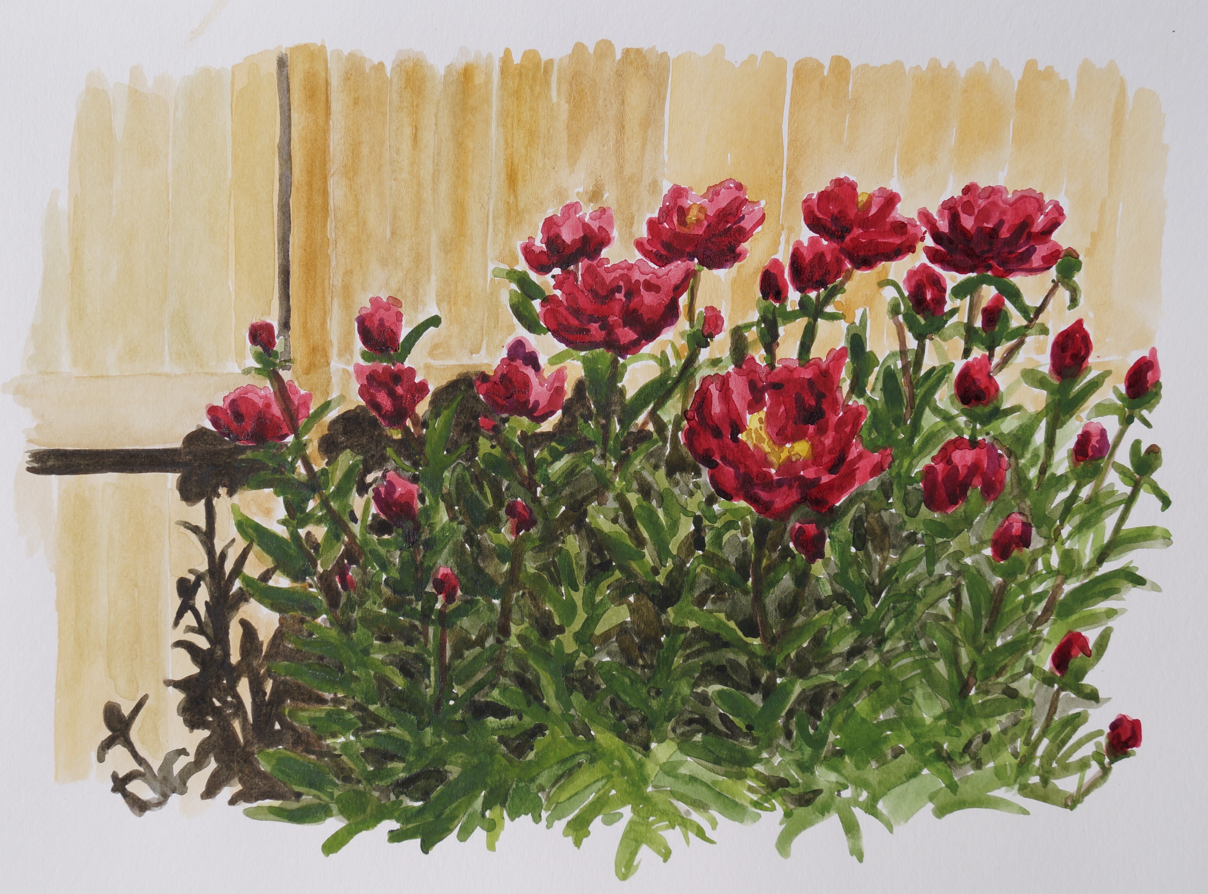 All I want to do today is sit on my deck in the sun, enjoying the views of my garden in bloom. I was sitting out there this morning with a beautiful book I got at the library about Virginia Woolf’s garden at Monk’s house (by Caroline Zoob if you would like to look it up). Her garden at Monk’s house was much bigger than what I have with my 1950’s bungalow, and I know that they employed gardeners, but it is so inspiring to look at. It’s also fascinating to read about. The garden was already old when Leonard and Virginia Woolf bought the house in 1919 and then they added to it and altered it. A lot of the plants they inherited and even some they added can’t be bought now or are hard to find. It makes me a little sad that a gardener did not live in my house before me. The only perennial I inherited with my house is my peony, which I love. I did not even know it was a peony until my mom told me–it was a little leafy plant that never bloomed stuck in a corner under the living room window, completely shaded by the lilacs. We moved it to a sunny corner in my backyard and it has bloomed beautifully ever since.