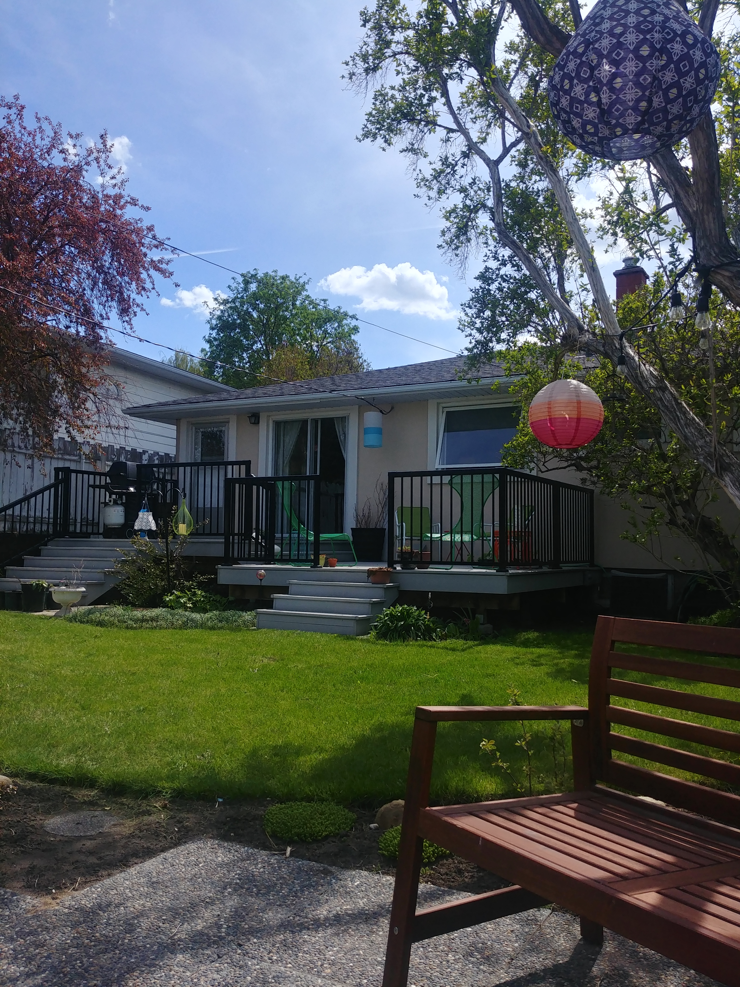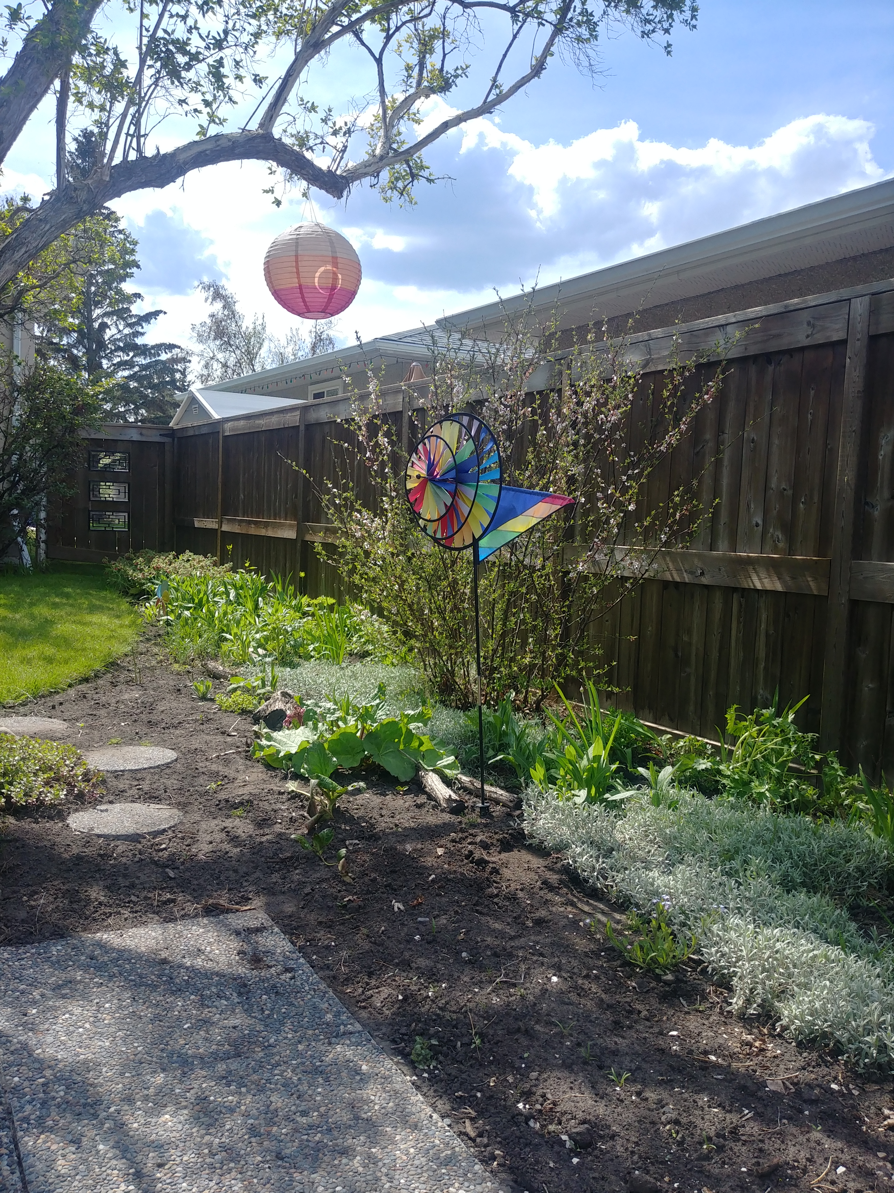 I am gardening a bit obsessively right now–I think Thursday was the first day that I just sat and enjoyed the yard without getting up to weed this or that, or transplant or prune something. I sat out on my patio on a perfect day with a book and a drink in the dappled shade of the Honeysuckle tree…it was glorious. This corner of my backyard that I turned into a patio garden last year is my favourite place in the world right now.