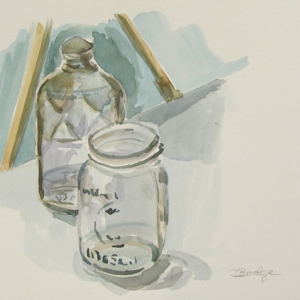 Watercolour Wednesday — An old pint jar and a mason jar twice.