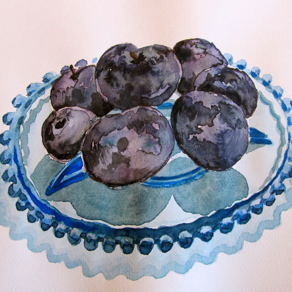Watercolour Wednesday — Plums on a plate.